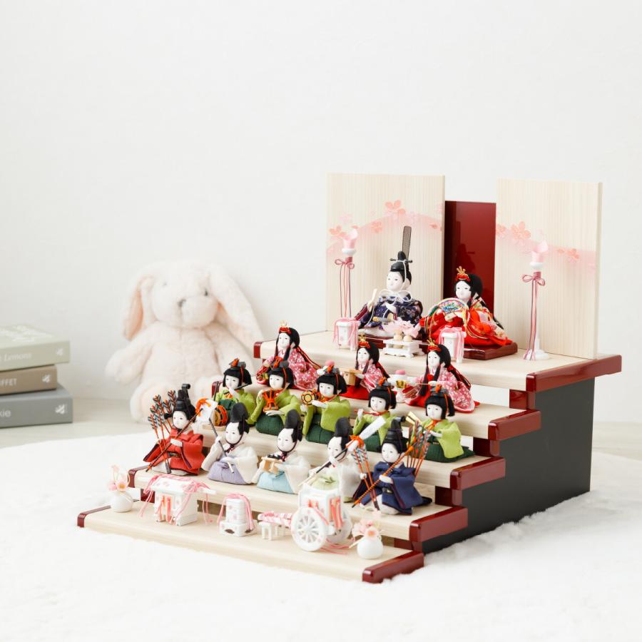 そこで、マンションやスペースのない方でも飾れる、コンパクトな15人飾りの雛人形をご紹介します!